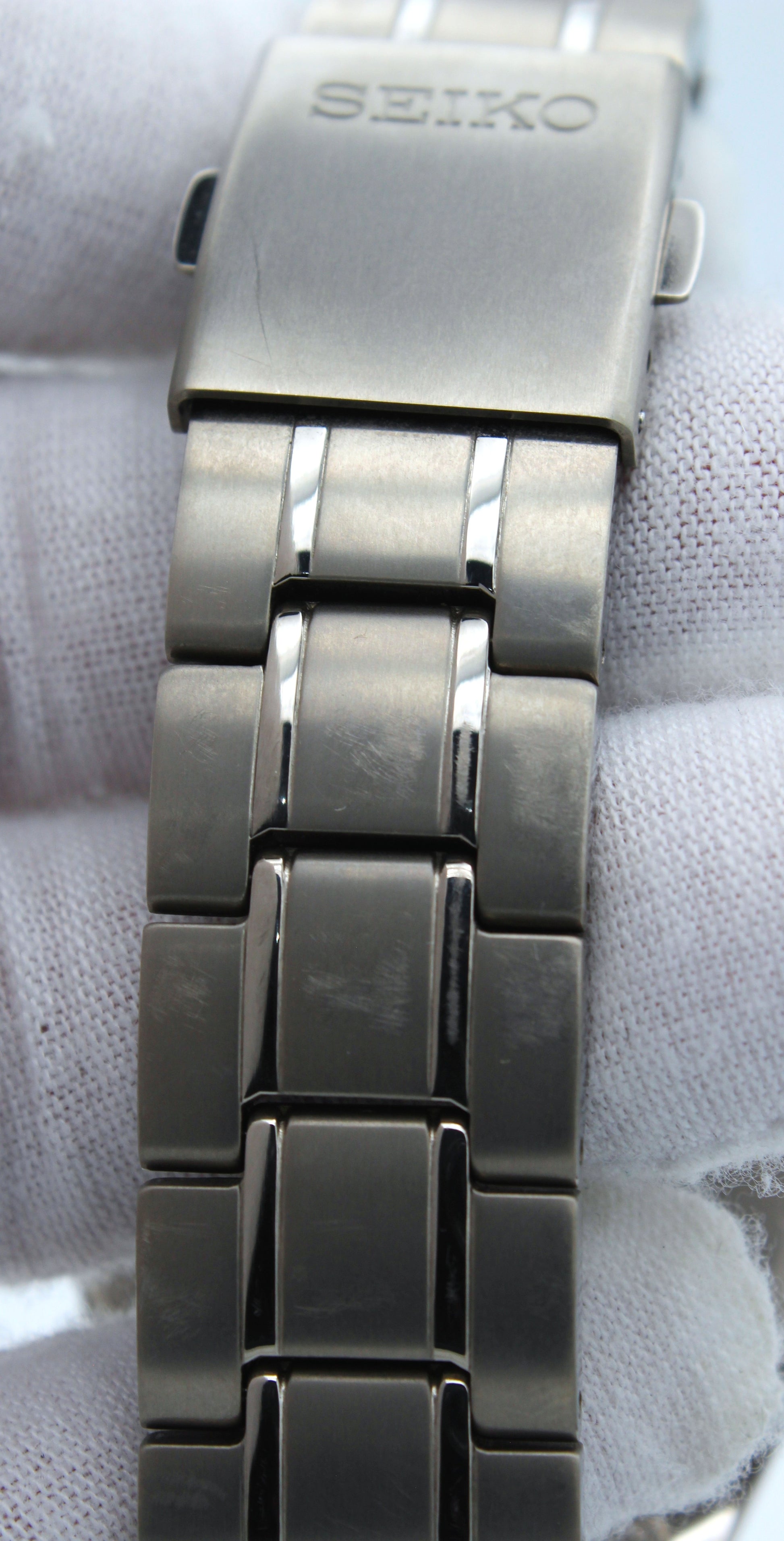 Un reloj clásico y confiable de Seiko, con caja y brazalete en titanio, lo que lo hace ligero y resistente. Con un diseño sobrio y elegante, ideal para diario, oficina o eventos formales. Reloj usado en muy buen estado, caja y cristal impecables, tiene señas de uso en la linea de eslabones de las 6h, los de las 12h no tienen rayones, ver fotos para los detalles.